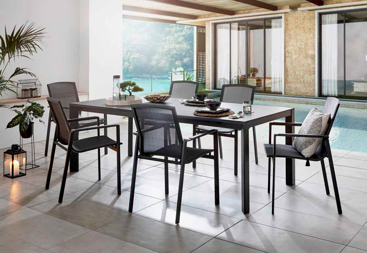 Sie gestalten Ihr Outdoor-Wohnzimmer mit diesem Gartentisch noch gemütlicher. Ein Rahmen aus Aluminium ist die Basis des Outdoor-Tischs. Des Weiteren kann der graue Outdoor-Tisch auch optisch durch sein modernes Design überzeugen. Er besitzt eine Gesamtbreite von 220 cm, eine Höhenabmessung von 75 cm und eine Tiefe von 100 cm. Das Gartenmöbel verfügt über ein Gewicht von 16 kg. Hübsche Gestaltung und ein überzeugendes Esserlebnis im Freien prägen den Outdoor-Tisch der Marke Amatio. Der Gartentisch ist für ein Gewicht von bis zu 75 kg ausgelegt. Setzen Sie sich mit Freunden an diesen Outdoor-Tisch und geniessen Sie das schöne Wetter.