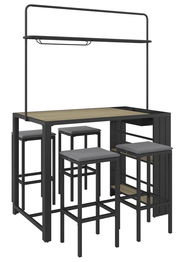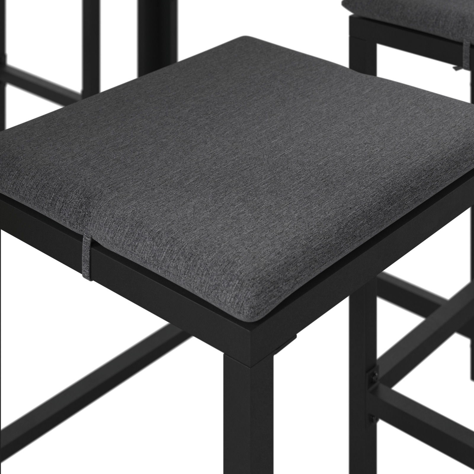 Entdecken Sie das stilvolle Ambia Garden Bar-Set CABANA, das modernes Design mit funktionalem Nutzen vereint. Dieses rechteckige Set überzeugt durch seine schlichte Eleganz und die hochwertige Verarbeitung, die Ihrem Außenbereich einen trendigen Touch verleiht. Die Tischplatte und die Regalböden bestehen aus edlem Akazienholz, das für seine Langlebigkeit und natürliche Schönheit bekannt ist. Das pulverbeschichtete Aluminiumgestell sorgt für Stabilität und Wetterfestigkeit. Die grauen Kissenbezüge fügen sich harmonisch in das Gesamtbild ein und unterstreichen den modernen Stil. Mit einem Bartisch und vier passenden Hockern bietet dieses Set genügend Platz für gesellige Runden im Freien.