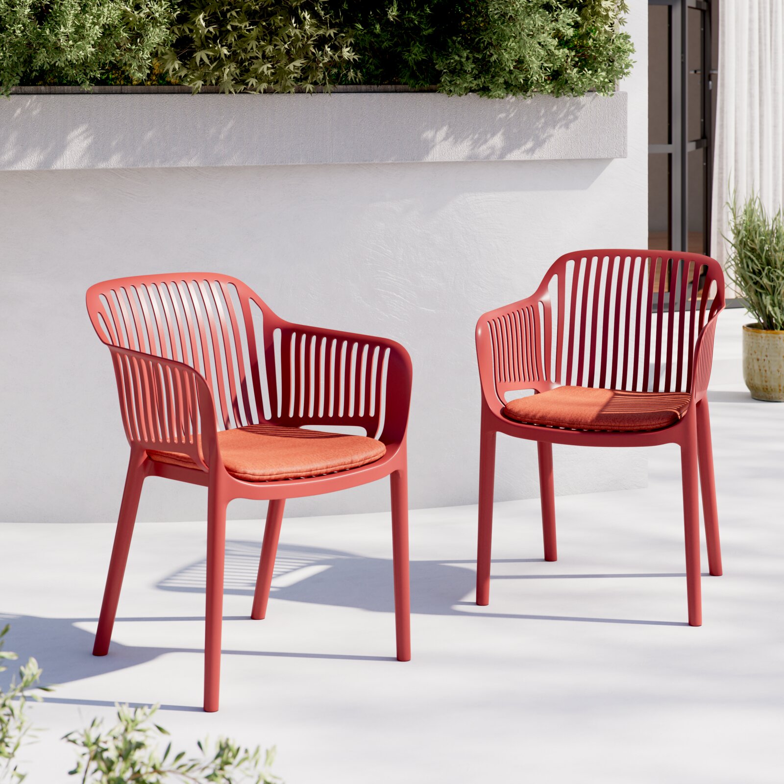 Entdecken Sie den Ambia Garden Stapelsessel MINO, der mit einem modernen und trendigen Stil überzeugt. Dieser Sessel in kräftigem Rot bringt frischen Wind in Ihren Außenbereich. Hergestellt aus hochwertigem Kunststoff (PP), bietet er eine stilvolle und zugleich robuste Sitzgelegenheit. Die Sitzhöhe von 48 cm, die Sitzbreite von 42 cm und eine Sitztiefe von 40,5 cm gewährleisten optimalen Komfort. Der Stuhl wird durch ein wasserabweisendes, rotes Sitzkissen ergänzt, das nicht nur optisch ein Highlight ist, sondern auch bei unterschiedlichen Wetterbedingungen schützt. Mit einer Belastbarkeit von bis zu 130 kg ist er die perfekte Wahl für entspannte Stunden im Garten.