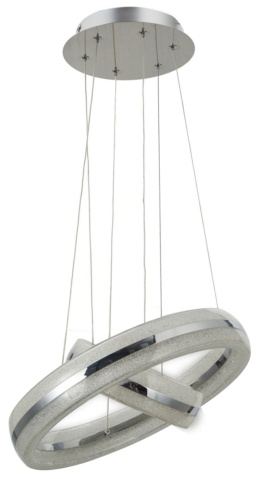Die LED-Leuchtmittel sind bereits im Lieferumfang enthalten, was die Installation besonders einfach und unkompliziert macht. Die Leuchte wird über Netzbetrieb betrieben und sorgt für eine gleichmäßige Ausleuchtung ohne störende Schatten. Die stilvolle Chromoberfläche verleiht der Leuchte ein modernes Aussehen, das sich perfekt in verschiedene Einrichtungsstile integrieren lässt. Ob im Wohnzimmer, Esszimmer oder Büro – diese Hängeleuchte ist eine ideale Wahl für alle, die Wert auf Design und Funktionalität legen. Erleben Sie die perfekte Kombination aus Ästhetik und Effizienz und entscheiden Sie sich noch heute für die Ambiente LED-Hängeleuchte.