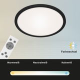 Die Briloner LED-Deckenleuchte PIATTO bringt stilvolle Eleganz in jeden Raum. Die schwarze Leuchte überzeugt durch ihre Vielseitigkeit und die Möglichkeit, die Lichtfarbe von warmweiß bis kaltweiß flexibel anzupassen. Mit einer Nennleistung von 24 W und einer beeindruckenden Lichtstärke von 2500 Lumen sorgt sie für eine helle und angenehme Beleuchtung. Das hochwertige Kunststoffmaterial macht die Leuchte langlebig und pflegeleicht. Die Steuerung erfolgt bequem über die mitgelieferte Fernbedienung, sodass Sie die Farbtemperatur von 3000 bis 6500K nach Belieben einstellen können. Diese Deckenleuchte ist die perfekte Wahl für anspruchsvolle Wohnräume.