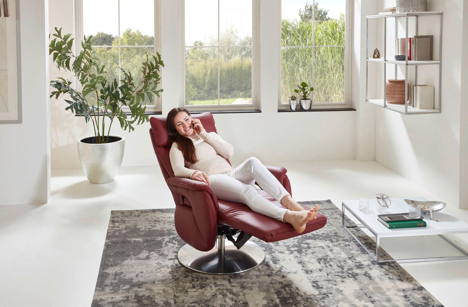 RAPHAEL RELAXX: Ihr perfekter Fernsehsessel Der Cantus Fernsehsessel RAPHAEL RELAXX ist nicht nur ein optisches Highlight, sondern auch funktional durchdacht. Der Sessel ist drehbar, was Ihnen eine flexible Nutzung und einfache Anpassung an Ihre individuellen Bedürfnisse ermöglicht. Das Echtleder und die hochwertige Verarbeitung garantieren Langlebigkeit und ein angenehmes Sitzgefühl. Die manuelle Kopfteilverstellung sorgt dafür, dass Sie jederzeit bequem entspannen können. Erleben Sie den ultimativen Komfort und gönnen Sie sich diesen exklusiven Fernsehsessel. Bestellen Sie noch heute und genießen Sie Ihr neues Lieblingsmöbelstück!