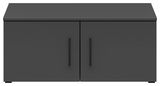 Der Carryhome Aufsatzschrank MULTISTAURAUM präsentiert sich in einem modernen Stil und ist ideal für alle, die Wert auf trendiges und funktionales Design legen. Mit seiner eleganten Graphitfarbe sowohl an der Front als auch am Korpus fügt sich dieser Schrank nahtlos in jedes zeitgemäße Interieur ein. Die stilvollen Bügelgriffe unterstreichen das ansprechende Dekor in Graphitfarben und verleihen dem Schrank eine zusätzliche Portion Eleganz. Aus hochwertiger Holznachbildung gefertigt, bietet der Schrank eine langlebige und robuste Lösung für Ihre Aufbewahrungsbedürfnisse. Die zwei Drehtüren sorgen für eine einfache und bequeme Handhabung.