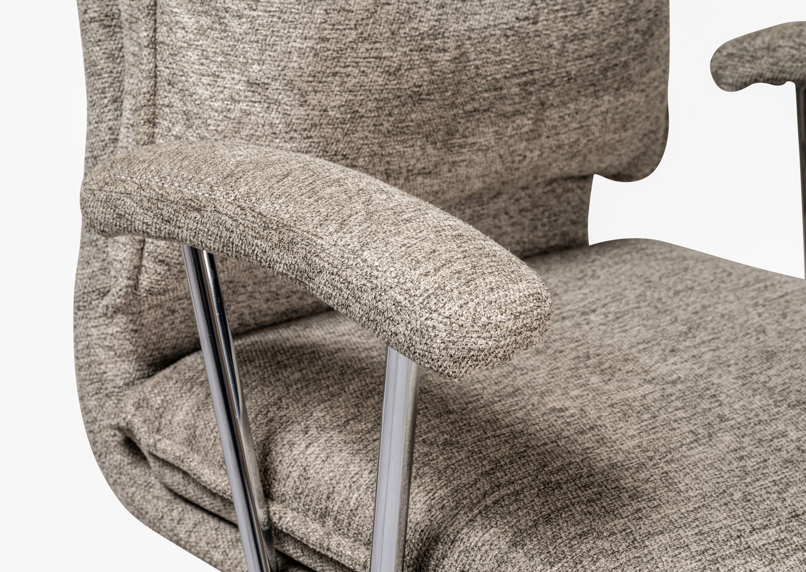 Der Drehstuhl Carryhome MARION von Carryhome vereint modernes Design und erstklassigen Komfort perfekt. Mit seinem braungrauen Webstoffbezug und einem verchromten Metallgestell setzt er stilvolle Akzente in Ihrem Home Office. Die grosszügigen Masse von 91 cm Höhe, 62 cm Tiefe und 61 cm Breite sorgen für eine bequeme Sitzfläche, während die fünf Rollen für maximale Mobilität sorgen. Dank der Höhenverstellbarkeit und der drehbaren Sitzfläche passt sich der Stuhl individuell an Ihre Bedürfnisse an. Die Belastbarkeit von bis zu 140 kg garantiert eine robuste und langlebige Nutzung.