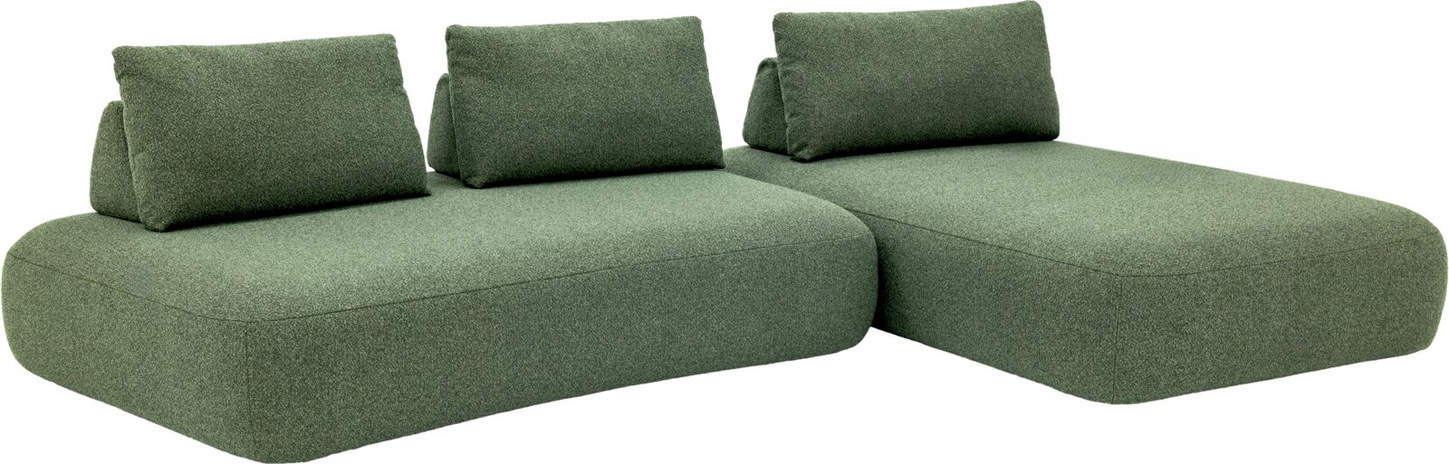 Erleben Sie ultimativen Komfort und stilvolle Modernität mit der Chilliano Longchairkombination FLEX. Diese exquisite Kombination aus einem geraden Basiselement, zwei Rückenteilen und einem abgerundeten Basiselement mit Rückenteil bietet Ihnen ein außergewöhnliches Entspannungserlebnis. Der luxuriöse Bezug aus Stoff Rhythm Forest in einem ansprechenden Grünton verleiht Ihrem Wohnraum eine frische und trendige Note. Mit einer Sitzhöhe von 40 cm und einer großzügigen Sitztiefe von 70 cm wird jedes Sitzen zum Genuss. Die hochwertige Nosagunterfederung sorgt für optimalen Sitzkomfort und Langlebigkeit. Die schwarzen Kunststofffüße ergänzen das moderne Design perfekt und bieten stabilen Halt.