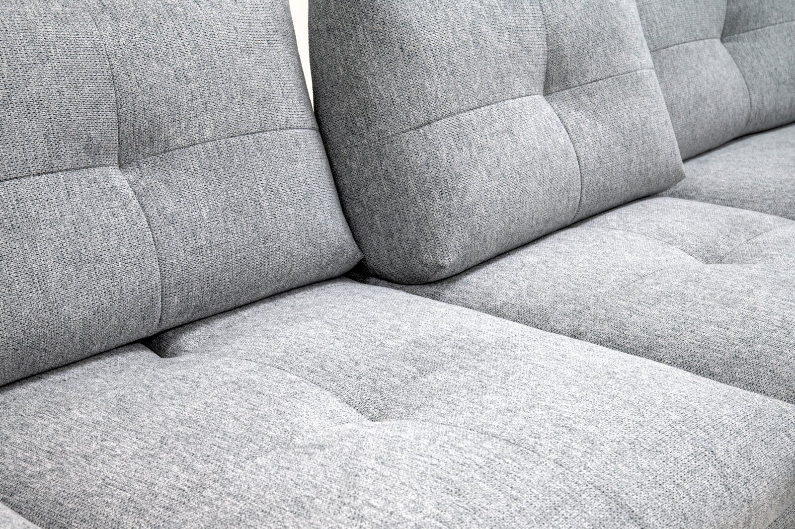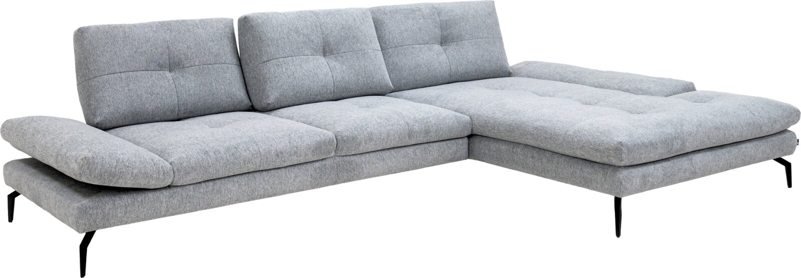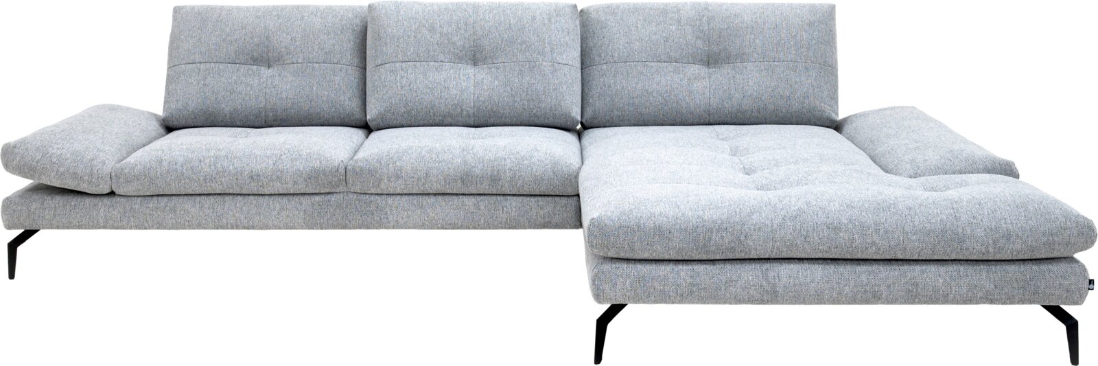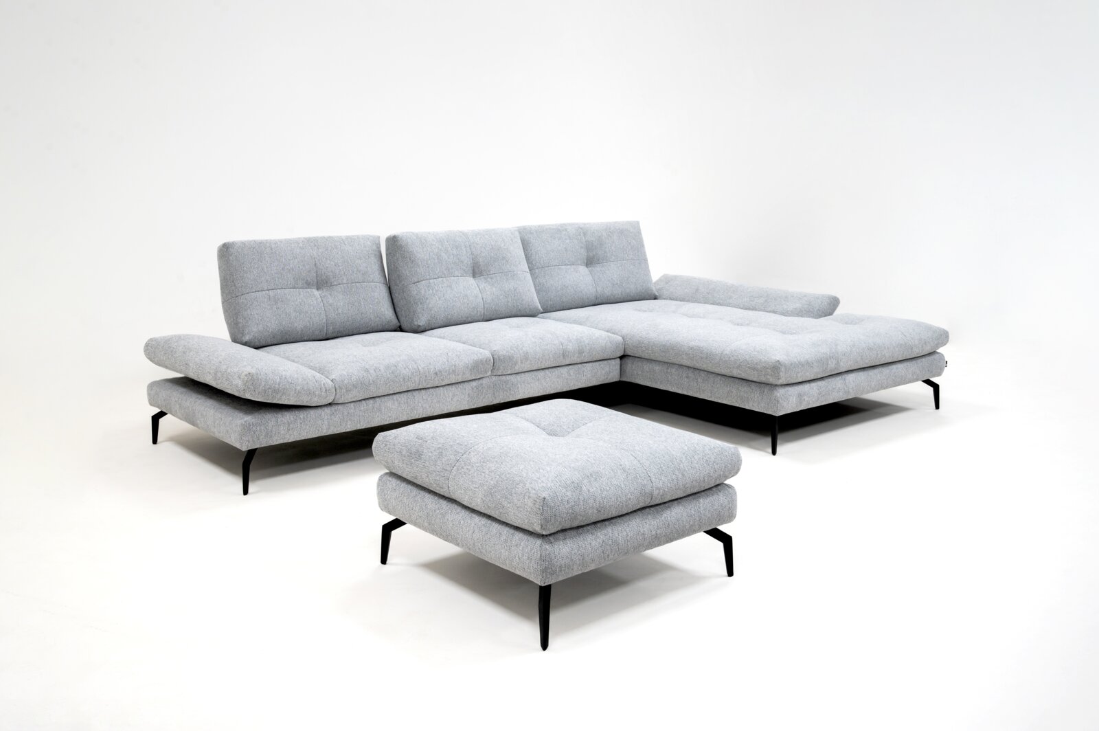 Erleben Sie mit der Chilliano Longchairkombination LUGANO stilvollen Komfort in modernem Design. Dieses elegante Möbelstück besticht durch seine zeitgemäße Ästhetik und hochwertige Verarbeitung. Der Stoffbezug in Fantasy Frost grey verleiht dem Sofa eine ansprechende und trendige Optik, die durch die schwarzen Metallfüße perfekt ergänzt wird. Die Sitzhöhe von 45 cm sorgt für ein angenehmes Sitzerlebnis, während die Nosagunterfederung optimalen Sitzkomfort garantiert. Bestehend aus einem 2er Sofa mit Armteil links und einer Ottomane mit Armteil rechts, bietet diese Kombination flexible Sitz- und Rückentiefenverstellung. Zusätzlich punktet das Sofa mit einem echten Rücken, der es frei im Raum stellbar macht.