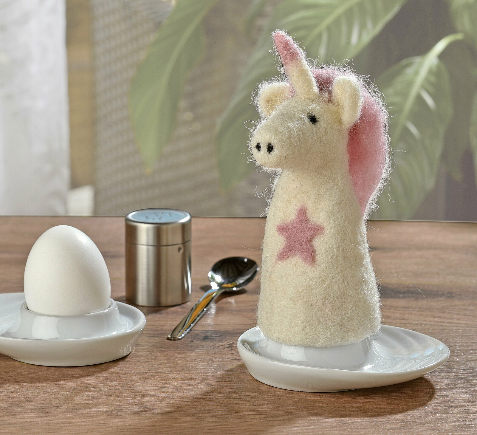 Der Cilio Eierwärmer Einhorn LANA ist ein handgefertigtes Produkt aus weicher rosa Schafwolle. Mit den Maßen 10 cm x 13 cm x 4 cm und einem Gewicht von 0,04 kg bietet er nicht nur eine ansprechende Optik, sondern auch praktische Pflegeeigenschaften, da er waschbar und bis zu 100°C hitzebeständig ist. Jetzt entdecken!