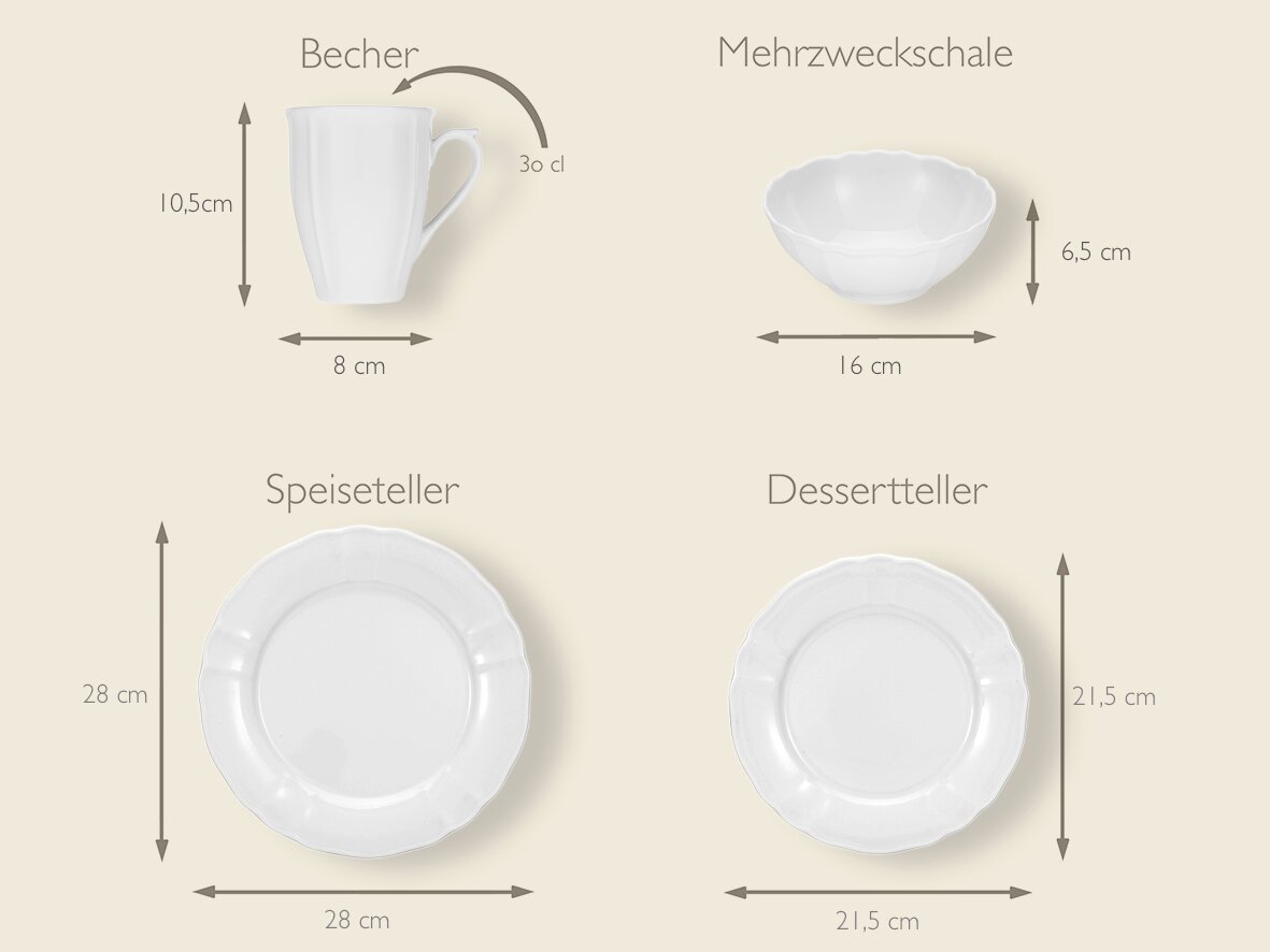 Creatable Kombiservice 16-tlg FLORA – Eleganz trifft auf Funktionalität Das Creatable Kombiservice 16-tlg FLORA verbindet klassisches Design mit moderner Funktionalität. Jedes Teil des Sets ist sorgfältig aus Porzellan gefertigt, um Ihnen eine außergewöhnliche Langlebigkeit und Widerstandsfähigkeit zu bieten. Die schlichte weiße Farbe ermöglicht eine vielseitige Kombination mit verschiedenen Tischdekorationen. Ob für ein festliches Dinner oder ein gemütliches Frühstück, das Service passt sich Ihren Bedürfnissen an. Entdecken Sie die perfekte Balance zwischen Ästhetik und Praktikabilität und bereichern Sie Ihr Zuhause mit diesem stilvollen Service. Bestellen Sie noch heute und erleben Sie den Unterschied!