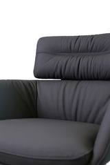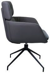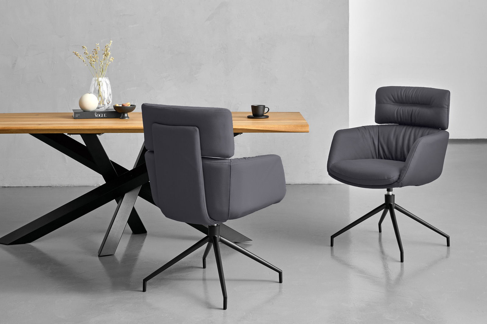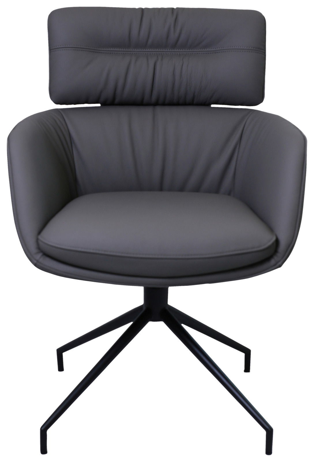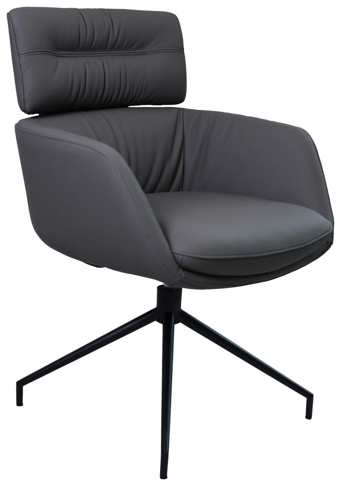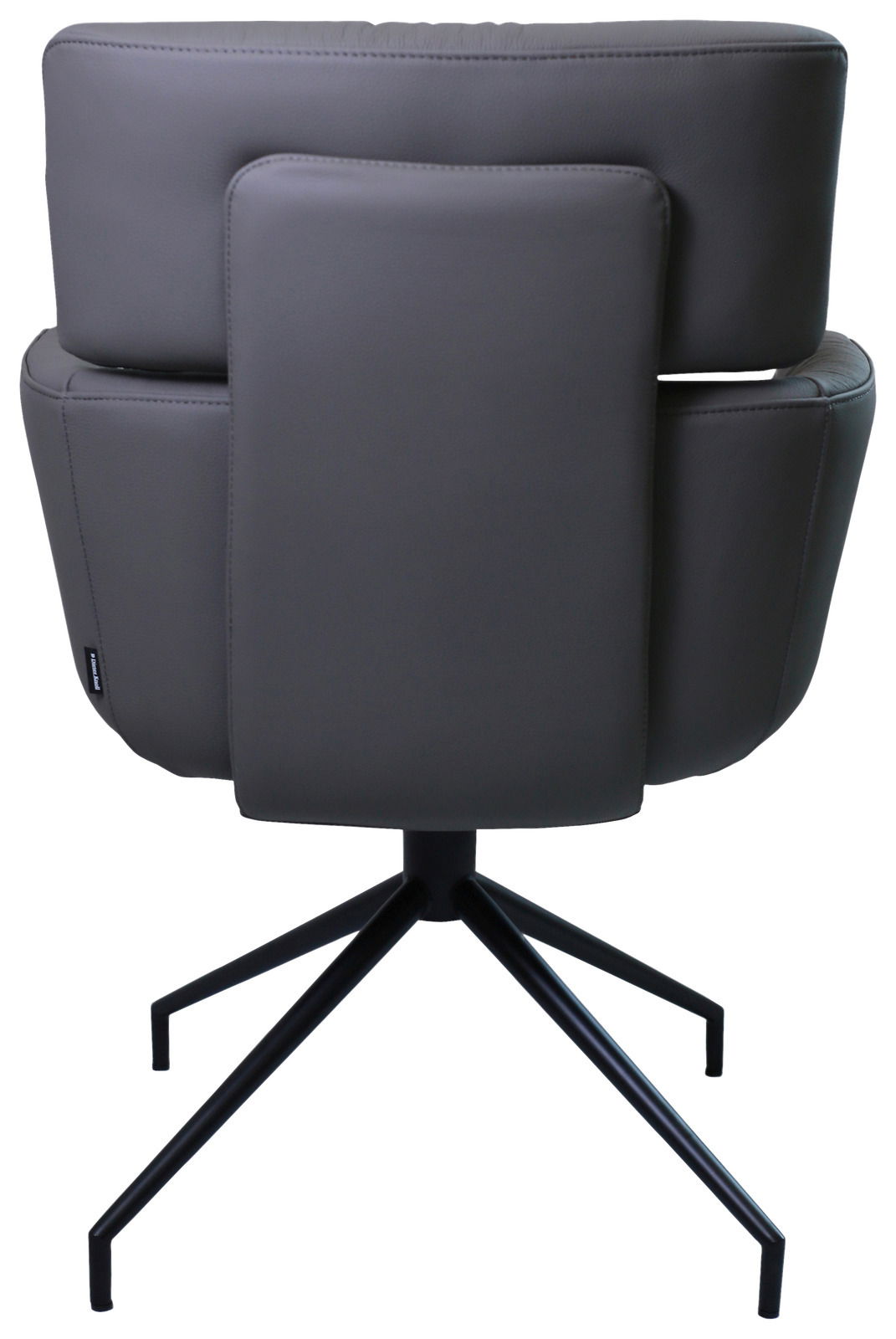 Dieter Knoll Armlehnstuhl PABLO: Stilvolles Design Der Dieter Knoll Armlehnstuhl PABLO besticht nicht nur durch seine trendige Ästhetik, sondern auch durch seine hochwertigen Materialien. Das dunkelgraue Leder und das schwarze Metallgestell verleihen dem Stuhl eine edle Ausstrahlung, die in jedem Raum zum Blickfang wird. Mit einer Sitzbreite von 45 cm bietet er ausreichend Platz für entspannte Stunden. Der Stuhl ist nicht nur ein Designstatement, sondern auch funktional, dank seiner Drehbarkeit. Gönnen Sie sich diesen stylischen Armlehnstuhl und verwandeln Sie Ihr Zuhause in eine Designoase. Bestellen Sie jetzt und genießen Sie herausragenden Komfort.