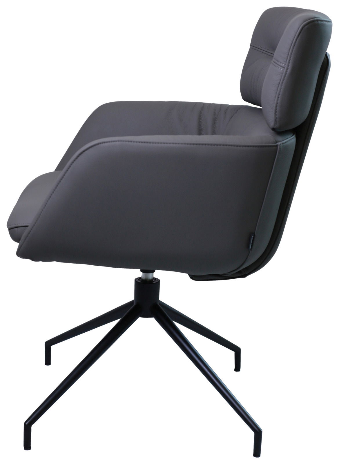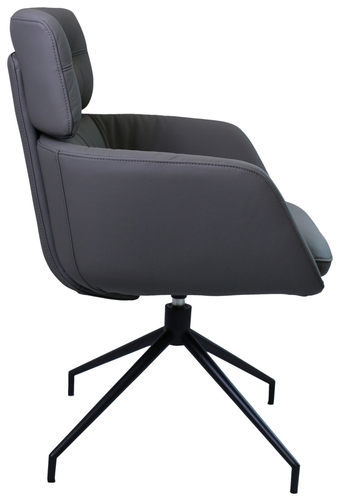Erleben Sie den ultimativen Komfort mit dem Dieter Knoll Armlehnstuhl PABLO. Der Stuhl besticht durch seinen modernen Stil und trendiges Design, das sich perfekt in jedes zeitgemäße Ambiente einfügt. Der Bezug aus dunkelgrauem Leder verleiht dem Stuhl eine elegante Optik, die durch das pulverbeschichtete Metallgestell in Schwarz harmonisch ergänzt wird. Mit einer Sitzhöhe von 49 cm und einer Sitztiefe von 46 cm bietet der Stuhl optimalen Sitzkomfort. Zusätzlich ist der Stuhl drehbar, was seine Vielseitigkeit erhöht. Die Belastbarkeit von bis zu 140 kg unterstreicht die Robustheit und Langlebigkeit dieses stilvollen Möbelstücks.