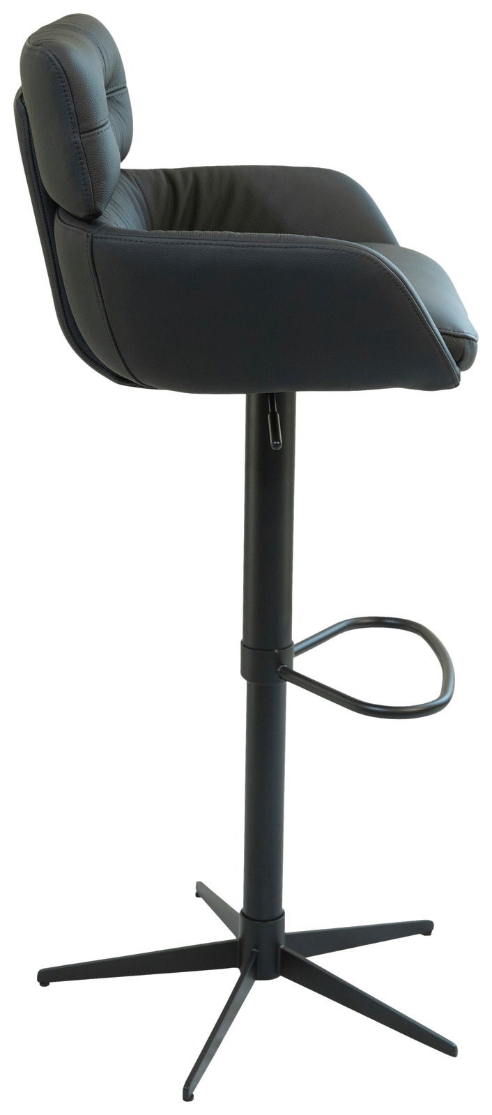 Der Dieter Knoll Barhocker PABLO beeindruckt durch sein modernes und trendiges Design, das jeden Raum aufwertet. Mit seinem hochwertigen schwarzen Lederbezug und dem stabilen, pulverbeschichteten Metallgestell in Schwarz fügt sich dieser Barhocker nahtlos in jede moderne Einrichtung ein. Die drehbare Sitzfläche bietet Flexibilität und Komfort, während die Höhenverstellbarkeit eine individuelle Anpassung ermöglicht. Der Barhocker ist zudem strapazierfähig und hält einer Belastung von bis zu 120 kg stand, was ihn zu einer langlebigen Wahl für jedes Zuhause oder Büro macht. Mit einer Sitzbreite von 41 cm und einer Sitztiefe von 38 cm bietet er optimalen Sitzkomfort.