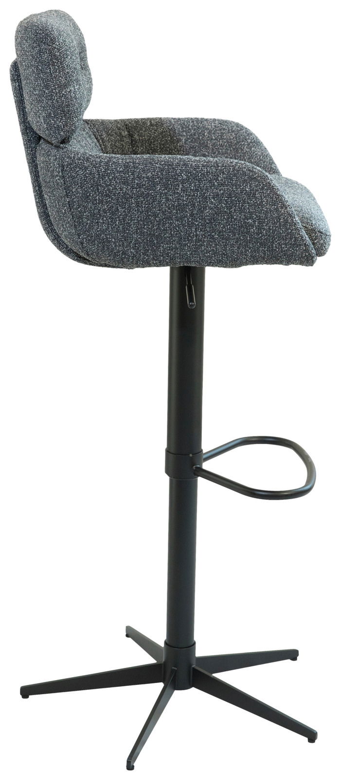Der Dieter Knoll Barhocker PABLO vereint modernes Design und Funktionalität in einem eleganten Möbelstück. Der Bezug aus Stoff Hevre in dunkelgrau verleiht dem Hocker eine zeitlose Eleganz, die durch das schwarze, pulverbeschichtete Metallgestell stilvoll ergänzt wird. Mit einer Sitzbreite von 41 cm und einer Sitztiefe von 38 cm bietet dieser Barhocker optimalen Sitzkomfort. Dank der Drehfunktion und der Höhenverstellbarkeit passt sich der Hocker flexibel an verschiedene Bedürfnisse und Sitzhöhen an. Die hohe Belastbarkeit von bis zu 120 kg und die strapazierfähige Stoffqualität mit 15000 Scheuertouren garantieren Langlebigkeit und Robustheit in jedem modernen Wohnraum.