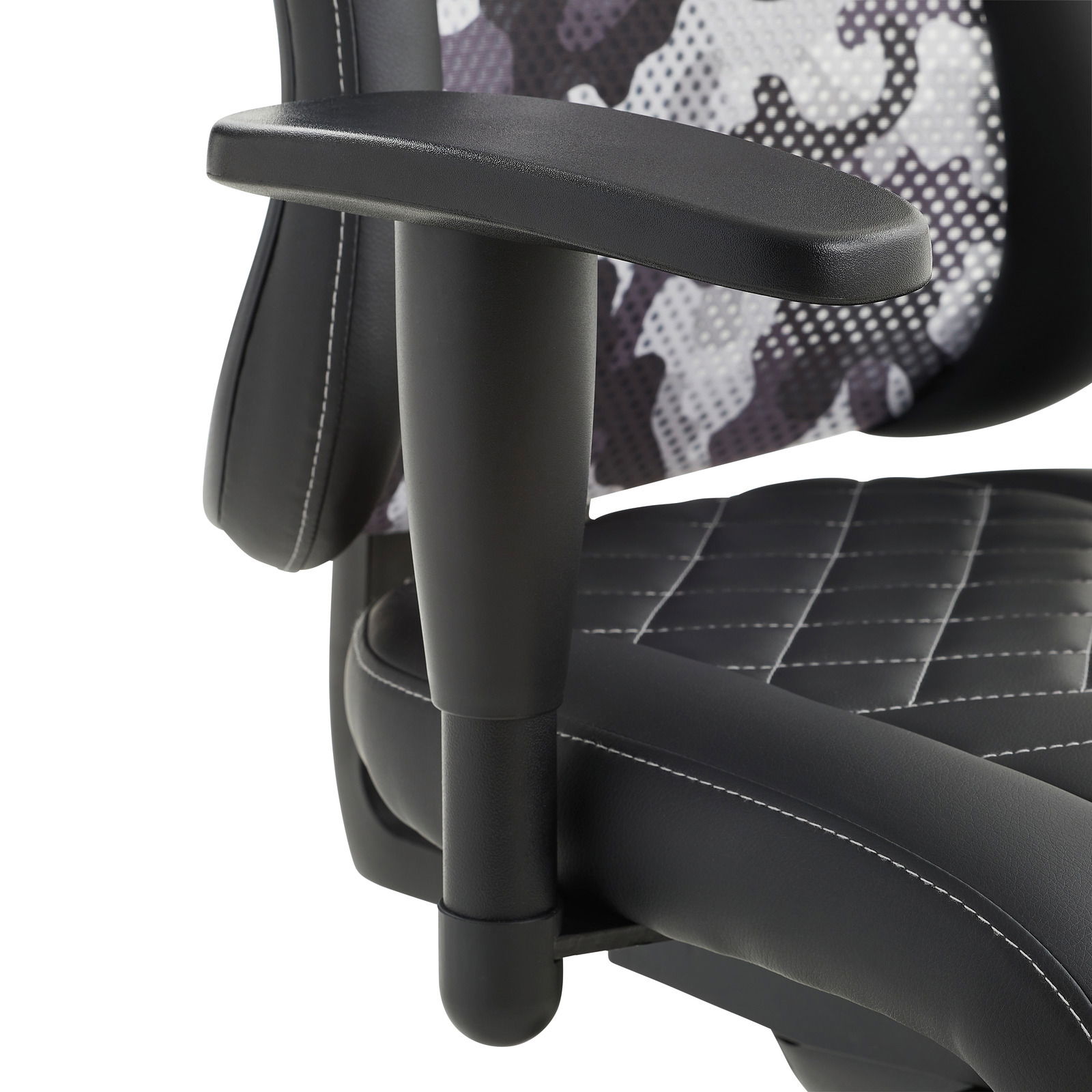 Der Dieter Knoll Gamingstuhl GAMING CHAIR ist die perfekte Wahl für alle, die modernes Design und höchsten Komfort schätzen. Mit seinem trendigen Camouflage-Muster in Grau und den eleganten grauen Ziernähten zieht dieser Stuhl alle Blicke auf sich. Die Hauptfarbe in Schwarz und Weiß sorgt für einen stilvollen Kontrast. Gefertigt aus hochwertigem Kunstleder, bietet der Gamingstuhl eine Sitzbreite von 47,5 cm und eine Sitztiefe von 44 cm, was optimalen Sitzkomfort gewährleistet. Die drehbare Konstruktion und die Höhenverstellbarkeit ermöglichen es Ihnen, die Sitzposition individuell anzupassen, während fünf stabile Rollen für Flexibilität und Mobilität sorgen.