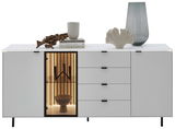 Sideboard RIANI: Stilvolles Highlight mit LED-BeleuchtungDas Sideboard RIANI ist ein wahres Highlight mit seiner integrierten LED-Oberboden- und Rückwandbeleuchtung, die für eine stimmungsvolle Atmosphäre sorgt. Die Kombination aus Weiß und Schwarz, ergänzt durch die elegant lackierten Elemente, macht es zu einem Blickfang in jedem Raum. Dank der praktischen Griffleiste lassen sich die Türen und Schubladen mühelos öffnen. Die großzügige Aufbewahrungskapazität bietet Ihnen Platz für all Ihre Lieblingsstücke. Erleben Sie die perfekte Synthese aus Design und Funktionalität in Ihren eigenen vier Wänden. Entdecken Sie jetzt, wie das Sideboard RIANI Ihr Zuhause bereichern kann!