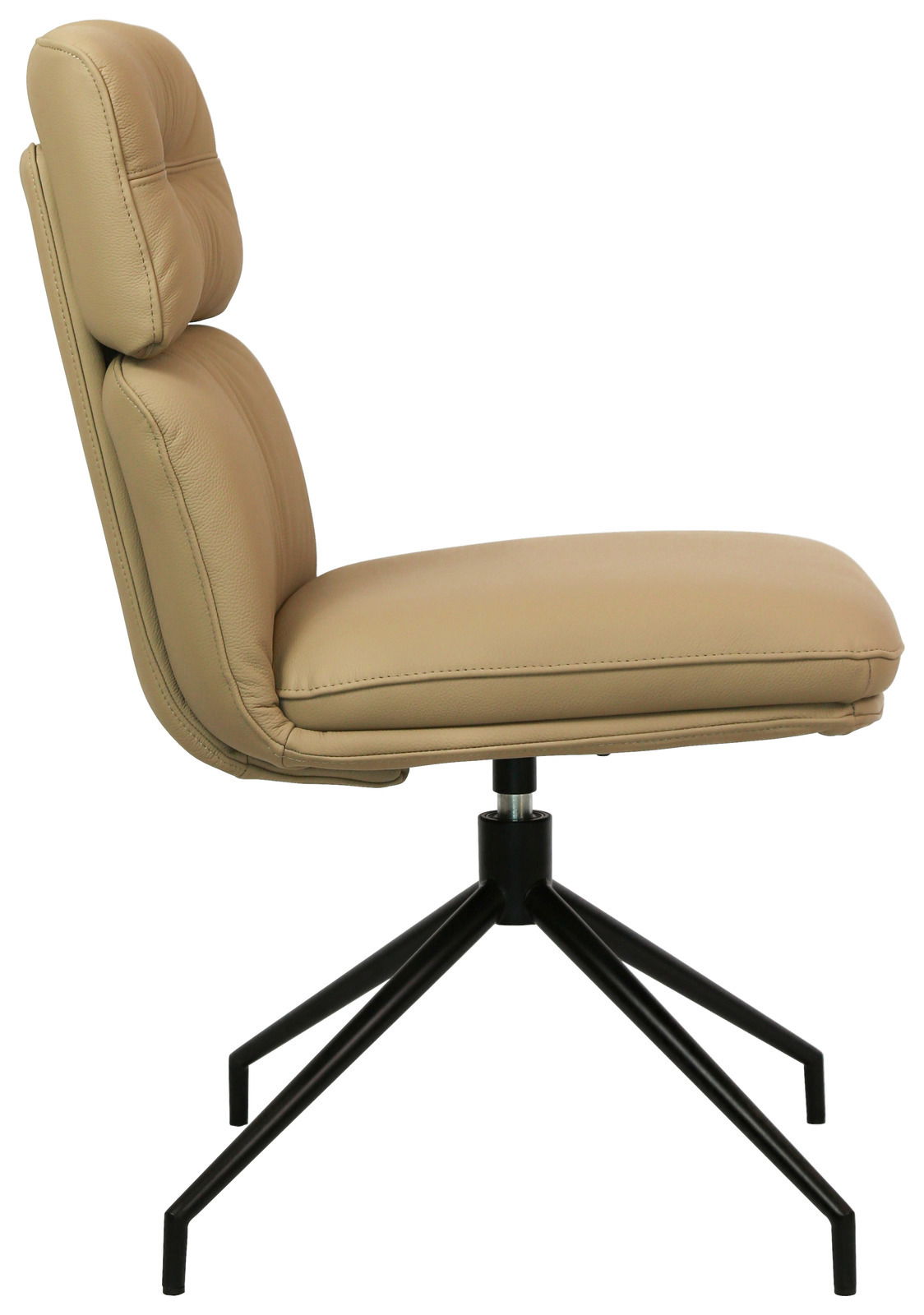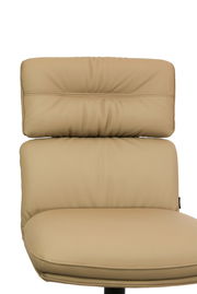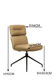 Der Dieter Knoll Stuhl PABLO vereint modernes Design mit höchster Funktionalität. Der hellbraune Lederbezug verleiht dem Stuhl eine elegante Optik, die in jedem Raum Akzente setzt. Das schwarze, pulverbeschichtete Metallgestell ergänzt das zeitgemäße Erscheinungsbild und sorgt für Stabilität. Mit einer Sitzhöhe von 49 cm, einer Sitzbreite von 50 cm und einer Sitztiefe von 47 cm bietet der Stuhl optimalen Komfort für entspannte Stunden. Der drehbare Mechanismus ermöglicht zusätzliche Flexibilität, während die robuste Konstruktion eine Belastbarkeit von bis zu 140 kg gewährleistet. Dieses Möbelstück ist ideal für alle, die Wert auf Stil und Qualität legen.