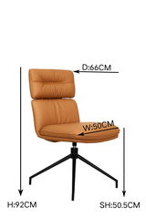 Erleben Sie den Dieter Knoll Stuhl PABLO, der mit seinem modernen und trendigen Design überzeugt. Der Bezug in edlem Leder cognac verleiht Ihrem Raum eine warme und einladende Atmosphäre. Der Stuhl besticht durch seine elegante Kombination aus hochwertigem Leder und einem pulverbeschichteten schwarzen Metallgestell, das für Stabilität und Langlebigkeit sorgt. Die drehbare Funktion des Stuhls bietet zusätzlichen Komfort und Flexibilität in Ihrem Alltag. Mit einer Sitzhöhe von 49 cm, einer Sitztiefe von 47 cm und einer Sitzbreite von 50 cm wird ein bequemes Sitzerlebnis garantiert. Der Stuhl ist bis zu 140 kg belastbar und eignet sich somit für vielfältige Einsatzmöglichkeiten.