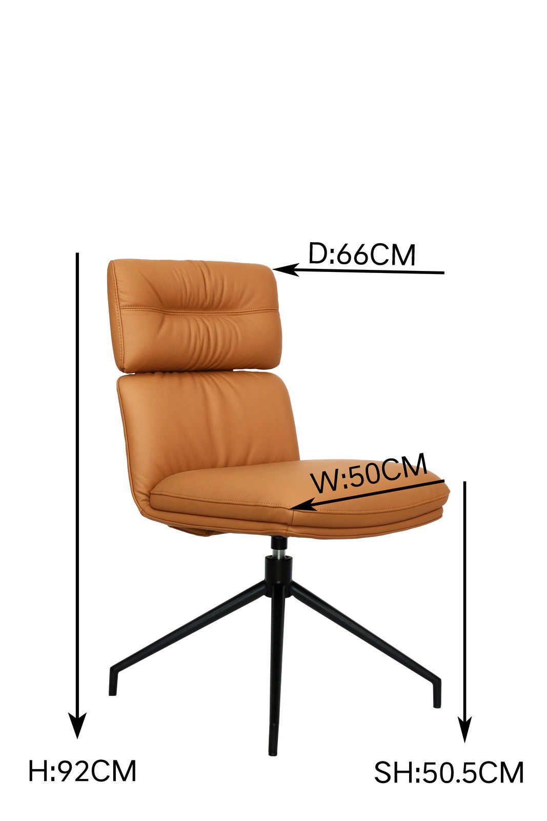 Dieter Knoll Stuhl PABLO - Eleganz und Funktionalität vereint Der Dieter Knoll Stuhl PABLO bietet nicht nur einen stilvollen Look, sondern auch höchste Funktionalität. Das cognacfarbene Leder harmoniert perfekt mit dem schwarzen Metallgestell und setzt moderne Akzente in jedem Raum. Trotz seiner eleganten Optik ist der Stuhl nicht höhenverstellbar, was ihn besonders stabil macht. Die robuste Konstruktion aus sorgfältig ausgewählten Materialien garantiert eine lange Lebensdauer, während die drehbare Sitzfläche für Flexibilität sorgt. Entdecken Sie den Komfort und das Design dieses einzigartigen Stuhls und bringen Sie frischen Stil in Ihr Zuhause. Entscheiden Sie sich jetzt für den Dieter Knoll Stuhl PABLO und werten Sie Ihr Ambiente auf!