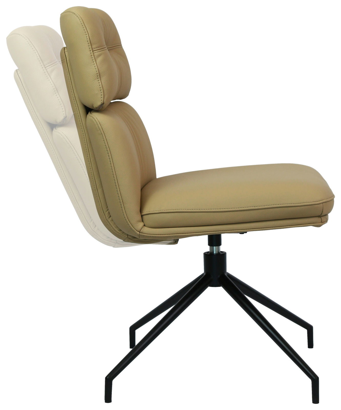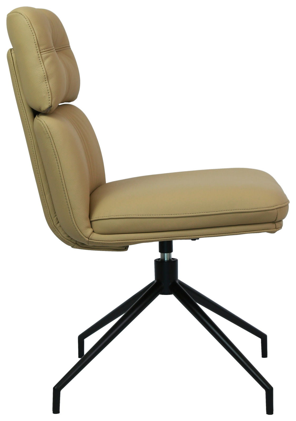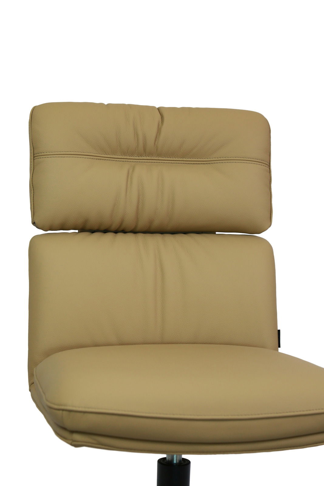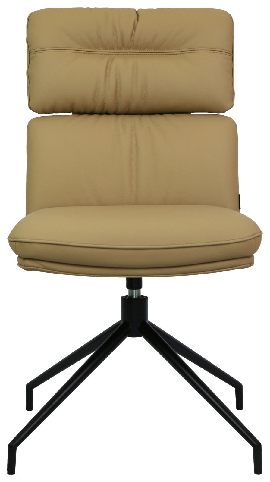 Der Dieter Knoll Stuhl PABLO verkörpert modernes Design und erstklassigen Komfort in einem. Mit seinem eleganten Lederbezug in der Farbe Caramel setzt er stilvolle Akzente in jedem Raum. Die schwarze, pulverbeschichtete Metallbasis verleiht dem Stuhl eine robuste Stabilität und betont gleichzeitig seine zeitlose Eleganz. Der Stuhl ist drehbar, was zusätzliche Flexibilität und Komfort bietet. Mit einer Sitzhöhe von 49 cm, einer Sitzbreite von 50 cm und einer Sitztiefe von 47 cm ist dieser Stuhl ideal für ein komfortables Sitzerlebnis über lange Zeiträume. Die hohe Belastbarkeit von bis zu 140 kg zeugt von der hochwertigen Verarbeitung und Langlebigkeit.