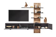 Mit der Wohnkombination ISEO beweist man mit Leichtigkeit guten Geschmack. Die Wohnwand macht in ihrem modernen Design eine optimale Figur. Sie hat eine Breite von insgesamt 273,8 cm, ein Höhenmass von 205,5 cm sowie ein Tiefenmass von 37,1 cm. Das Modell ISEO vereint sämtliche Qualitäten und Besonderheiten, die die Marke Dieter Knoll definieren. Die Wohnkombination aus Eiche ist graphitfarben. Diese Wohnwand fügt sich nahtlos in jeden Alltag ein.