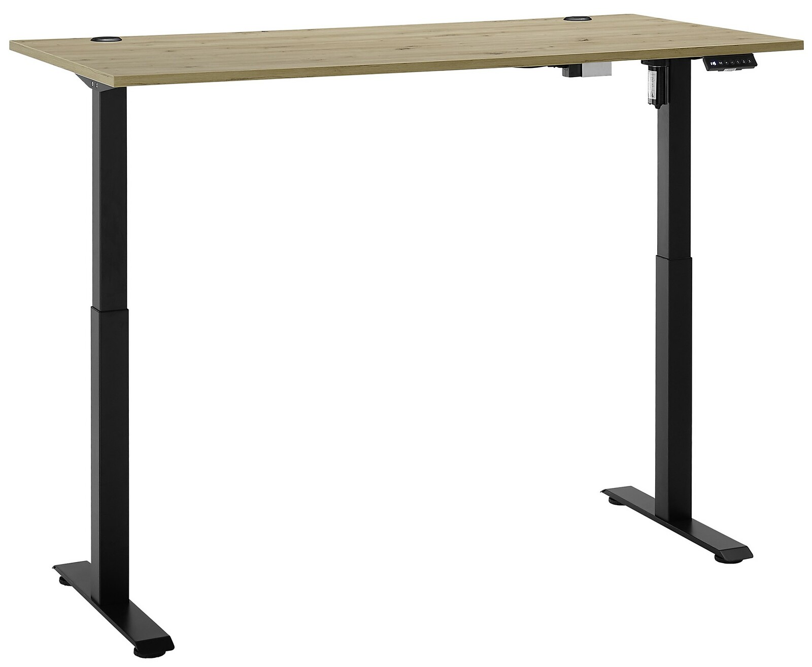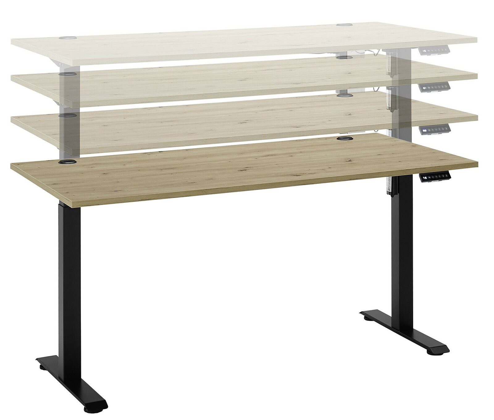 Erleben Sie das Zusammenspiel von Funktionalität und Ästhetik mit dem E-Serie E-Schreibtisch BEN. Mit seiner höhenverstellbaren Funktion bietet dieser Schreibtisch Flexibilität und Anpassungsfähigkeit, um Ihren Anforderungen gerecht zu werden. Die Einstellbarkeit der Höhe zwischen 74 und 117 cm ermöglicht eine individuelle Anpassung an Ihre Bedürfnisse und sorgt für einen optimalen Arbeitskomfort. Das Design des Schreibtisches ist modern und zeitlos, mit einer Hauptfarbe in Eichenoptik, die eine warme und einladende Atmosphäre in Ihr Büro bringt. Der Schreibtisch ist aus hochwertiger Holznachbildung gefertigt und steht auf schwarzen, stabilen Metallfüssen.