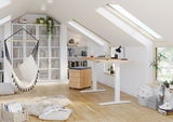 Mit seinen technischen Features unterstützt der E-Serie E-Schreibtisch "E-PROFI" das komfortable Arbeiten im Office. Sein trendiges Design mit Oberplatte im Asteiche-Dekor und weißem Metallgestell harmoniert mit jedem modernen Einrichtungsgeschmack.