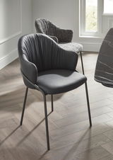 Der Emilio Belluti Armlehnstuhl MATTEO ist die perfekte Ergänzung für Ihr modernes Interieur. Mit seiner stilvollen Form und dem eleganten Design bringt er einen Hauch von Raffinesse in jeden Raum. Der Armlehnstuhl ist mit hochwertigem Leder in einem edlen Anthrazitton bezogen, was ihm ein luxuriöses Aussehen verleiht. Die Füße aus robustem Metall sorgen für Stabilität und runden das moderne Design ab. Obwohl der Stuhl nicht drehbar ist, bietet er dennoch optimalen Komfort und Unterstützung. Verwandeln Sie Ihren Wohn- oder Essbereich mit diesem zeitlosen Möbelstück in eine stilvolle Oase.