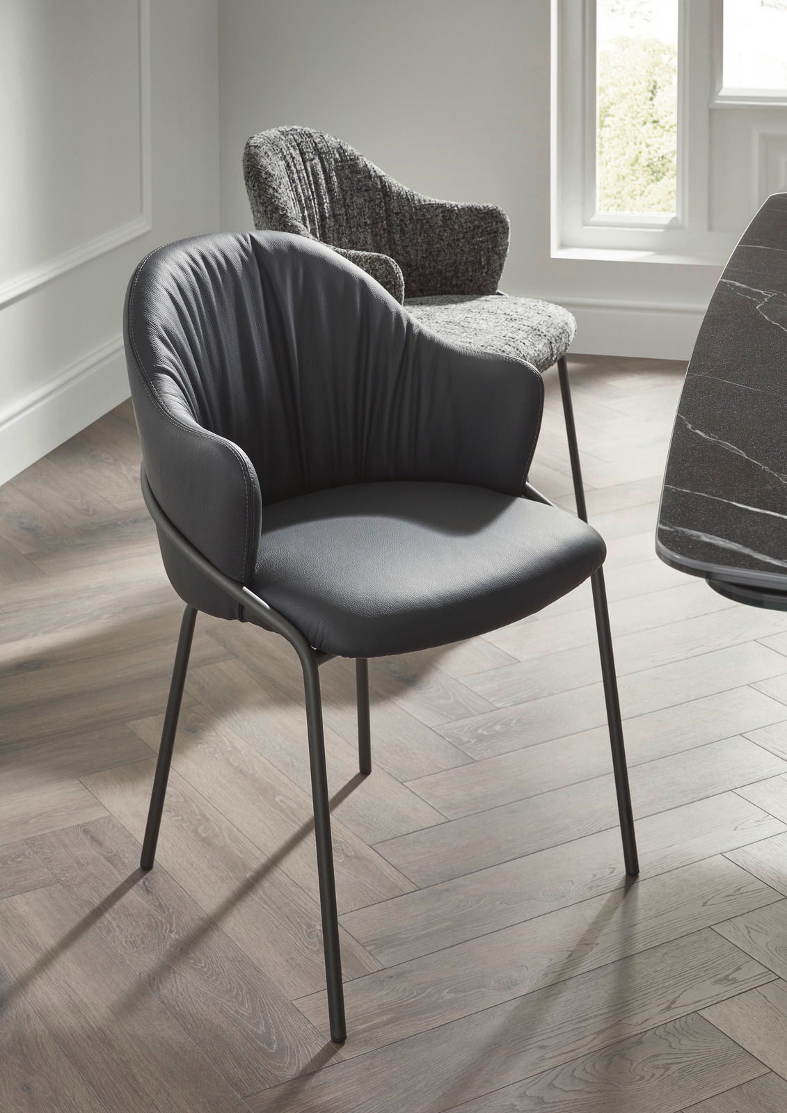 Emilio Belluti Armlehnstuhl MATTEO – Luxuriöser Komfort Erleben Sie unvergleichlichen Komfort und elegantes Design mit dem Emilio Belluti Armlehnstuhl MATTEO. Der Stuhl besticht durch seine hochwertige Lederqualität, die sowohl langlebig als auch pflegeleicht ist. Das edle anthrazitfarbene Leder harmoniert perfekt mit den metallischen Füßen und schafft ein modernes Gesamtbild. Dieses stilvolle Möbelstück passt hervorragend in ein trendiges Ambiente und bietet gleichzeitig einen gemütlichen Sitzplatz. Lassen Sie sich von der Qualität und dem Design dieses Armlehnstuhls überzeugen und gönnen Sie sich heute noch ein Stück gehobenen Wohnkomforts.