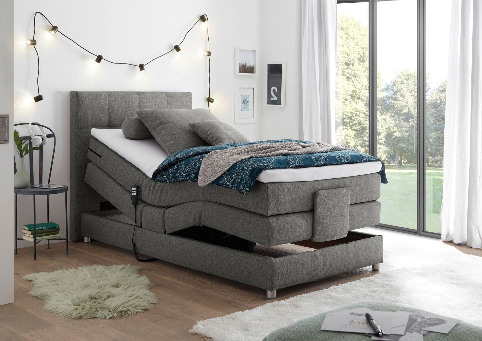 Esposa Boxspringbett MANOLO mit Motor: Verstellbarer Komfort Das Esposa Boxspringbett MANOLO ist mit einem innovativen Motor ausgestattet, der Ihnen die Möglichkeit bietet, sowohl das Kopf- als auch das Fußteil elektrisch zu verstellen. Diese Funktion ist ideal für diejenigen, die Wert auf Flexibilität und eine individuelle Liegeposition legen. Egal ob Sie lesen, fernsehen oder einfach nur entspannen möchten, dieses Bett passt sich Ihren Bedürfnissen an. Der Komfortschaumtopper unterstützt Ihre Körperkonturen und verbessert die Druckentlastung. Verwandeln Sie Ihr Schlafzimmer in eine Oase des Komforts und gönnen Sie sich den Luxus, den Sie verdienen. Zögern Sie nicht länger und erleben Sie den Unterschied noch heute!