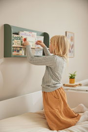 Für ein ordentliches Zuhause ist dieses Möbelstück die Lösung. Beim Möbel können Sie auf erstklassige Flexa-Markenqualität zählen. Das verwendete Holz ist mit dem FSC®-Gütesiegel für nachhaltig bewirtschaftete Wälder ausgezeichnet. Das Modell DOTS hat die Farbe Dunkelgrün. Es besticht mit der Qualität des verwendeten Holzes. Der Korpus des Möbelstückes wird mit einem ansprechenden Bezug aus dunkelgrünem Lack selbst den höchsten Ansprüchen gerecht. Das Regal bereichert Ihr persönliches Einrichtungskonzept durch das moderne Design zusätzlich. Die Fronten aus einem dunkelgrünen Material werten das stimmige Gesamtbild des Regals auf. Das Modell DOTS hat ein Breitenmass von 75 Zentimetern, eine Gesamthöhe von 34,5 Zentimetern sowie eine Tiefe von 10 Zentimetern. Es kommt mit einem Gewicht von 3 Kilogramm. Nehmen Sie dieses Regal als eine tolle Ergänzung zu Ihrer Einrichtung.
