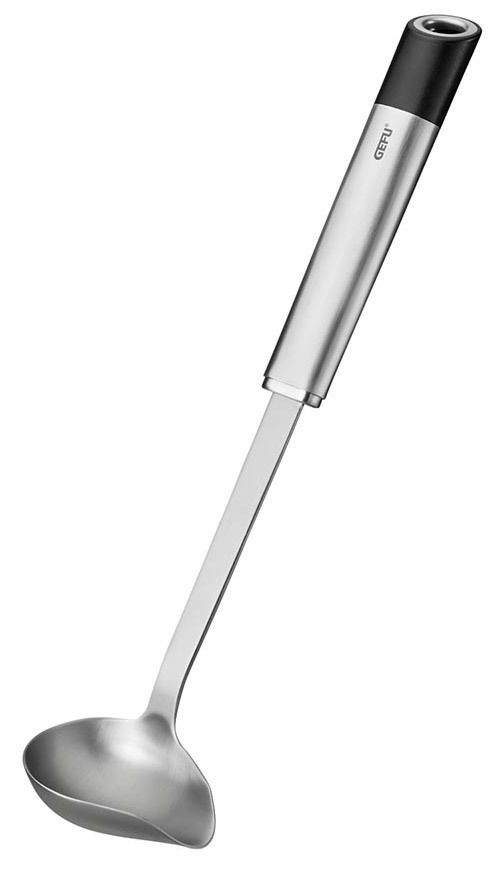 Ideal für Suppen und Saucen präsentiert sich der Gefu Saucenlöffel "PRIMELINE". Der praktische B/H/T ca. 5 x 30,9 x 7,8 cm große Helfer für Ihre Küche ist spülmaschinengeeignet und überzeugt mit seiner hochwertigen schwarz-silberfarbenen Edelstahloberfläche.