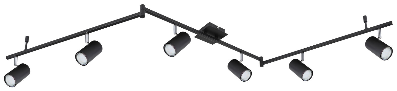 Der Globo Lighting Strahler ROBBY präsentiert sich in einem stilvollen schwarzen Design und fügt sich harmonisch in jede moderne Wohnumgebung ein. Dieser Strahler ist die perfekte Wahl für all jene, die auf der Suche nach einer hochwertigen und langlebigen Beleuchtungslösung sind. Gefertigt aus robustem Metall, garantiert er nicht nur eine lange Lebensdauer, sondern auch einen eleganten Look, der jedes Zimmer aufwertet. Der Strahler arbeitet im Netzbetrieb und wird ohne Leuchtmittel geliefert, wobei der Einsatz von 6x GU10 Leuchtmitteln mit einer maximalen Leistung von 35 W empfohlen wird. So können Sie die Lichtintensität individuell anpassen und für eine angenehme Atmosphäre sorgen.