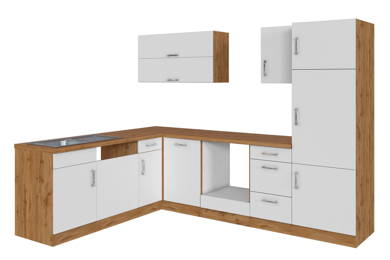 Mit einer Breite von ca. 210 cm und einer Tiefe von ca. 270 cm passt diese Küchenzeile optimal in größere Räumlichkeiten. Die Verarbeitung aus Holznachbildung ist robust und leicht zu pflegen. Eine Spüle ist im Lieferumfang enthalten. Freuen Sie sich auf die Held Möbel Küchenzeile SORRENTO!