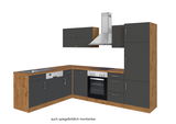 In dezentem Anthrazit präsentiert sich die Held Möbel Küchenzeile SORRENTO. Die Fronten stechen sofort ins Auge und lassen sich mit jeglichen Böden kombinieren. Die eichefarbene Arbeitsplatte harmoniert wunderbar mit dem ebenfalls eichefarbenen Korpus.