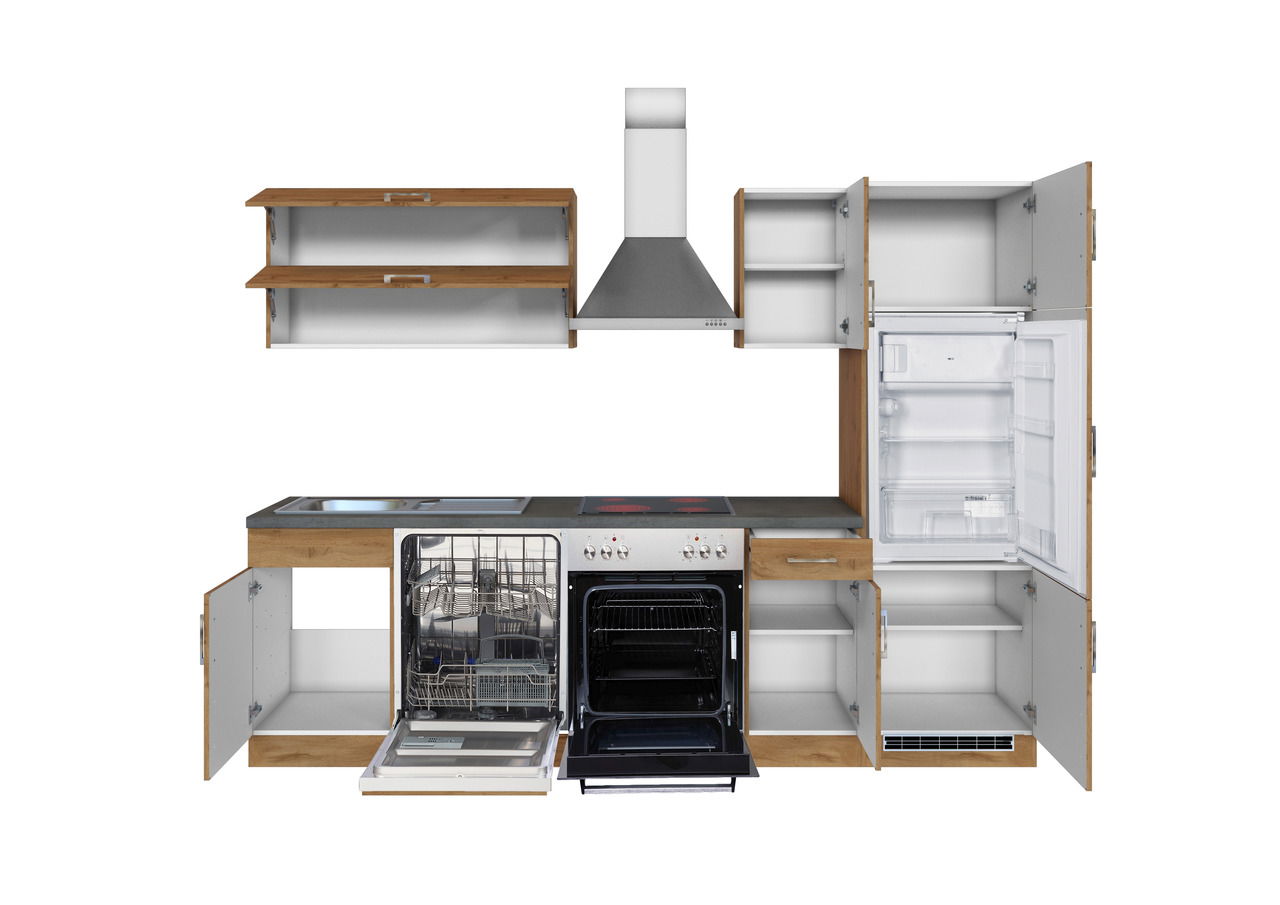 Mit einer Länge von ca. 270 cm kann die Küchenzeile auch in kleineren Räumlichkeiten untergebracht werden. Die Verarbeitung aus Holznachbildung ist robust und leicht zu pflegen. Eine Spüle ist im Lieferumfang enthalten. Freuen Sie sich auf die Held Möbel Küchenzeile SORRENTO!