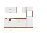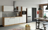 In strahlendem Weiß präsentiert sich die Held Möbel Küchenzeile SORRENTO. Die Fronten stechen sofort ins Auge und lassen sich mit jeglichen Böden kombinieren. Die eichefarbene Arbeitsplatte harmoniert wunderbar mit dem ebenfalls eichefarbenen Korpus.
