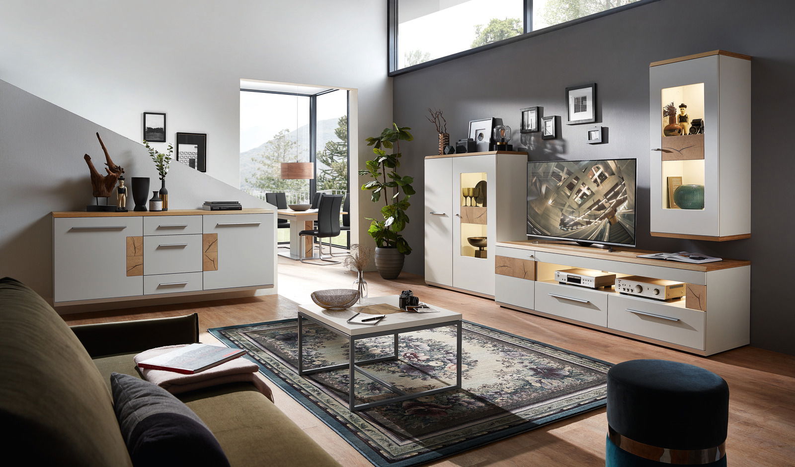 Außerordentlich modern präsentiert sich der Hom´in Couchtisch "STUDIO 7". Sein schlichtes Design aus weißem Mattlack und Votaneiche-Nachbildung fügt sich harmonisch in Wohnräume ein und sorgt für ein freundliches Ambiente.