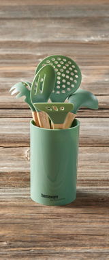 Erleben Sie die perfekte Kombination aus Design und Funktionalität mit dem Homeware Küchenhelferset. Die hochwertigen Holzküchenhelfer sind nicht nur ein Hingucker, sondern auch extrem praktisch im täglichen Gebrauch. Der grüne Behälter sorgt dafür, dass Ihre Küchenhelfer immer griffbereit und ordentlich verstaut sind. Egal ob Sie Spaghetti, Suppen oder Saucen zubereiten, diese Küchenhelfer unterstützen Sie bei jeder Aufgabe. Bestellen Sie jetzt das Homeware Küchenhelferset und bringen Sie Stil und Effizienz in Ihre Küche!
