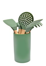 Das Homeware Küchenhelferset ist die perfekte Ergänzung für jede Küche. Mit seiner stilvollen grünen Farbe und dem hochwertigen Kautschukholz-Design bringt es nicht nur Funktionalität, sondern auch einen Hauch von Eleganz in Ihren Kochbereich. Das Set besteht aus einem Pfannenwender, einem Spaghettilöffel, einem Kochlöffel, einem Abseihlöffel, einem Schöpflöffel und einem praktischen Behälter. Diese Küchenhelfer sind aus Holz gefertigt, was sie nicht nur langlebig, sondern auch umweltfreundlich macht. Jedes Teil ist darauf ausgelegt, Ihnen das Kochen zu erleichtern und Ihr kulinarisches Erlebnis zu verbessern.