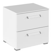 Intro Nachttisch RUDI: Funktionalität trifft Design Der Intro Nachttisch RUDI ist mehr als nur ein Möbelstück; er ist ein Statement moderner Wohnkultur. Dank seiner stabilen Bauweise steht er fest auf dem Boden und bietet zusätzlichen Stauraum durch seine zwei praktischen Schubladen. Die elegante weiße Farbgebung des Korpus und der Front harmoniert perfekt mit verschiedenen Einrichtungsstilen und schafft eine beruhigende Atmosphäre. Erleben Sie die perfekte Mischung aus Funktionalität und Design. Bestellen Sie jetzt den Nachttisch Rubi Intro und verwandeln Sie Ihr Schlafzimmer in eine stilvolle Wohlfühloase.