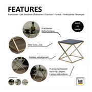 Ob neben dem Bett oder in der Sofaecke – der Jahnke Beistell-/Nachttisch "X-TRA D 140" setzt elegante Akzente in Ihren modernen Wohnräumen. Mit dem goldfarbenen Metallgestell und der schwarzen Ablage ist er ein kontrastreicher Blickfang im schlichten Stil.