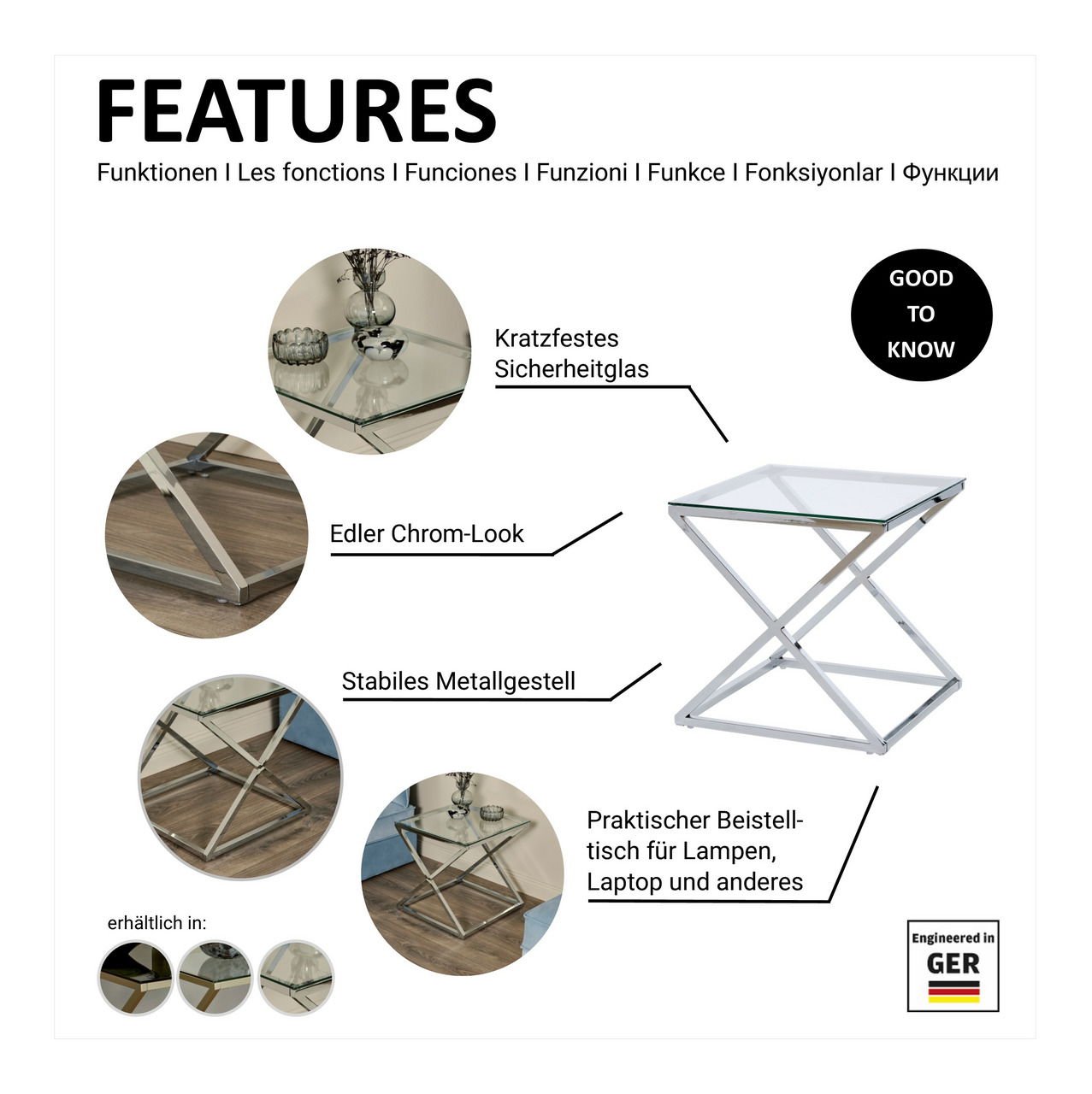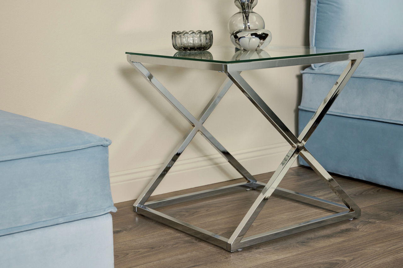 Der Jahnke Beistell-/Nachttisch "X-TRA D 140" präsentiert mit einem schlichten und gleichzeitig eleganten Charakter. Er kombiniert eine klare Glasplatte mit einem chromfarbenen Metallgestell. Sein Design integriert sich hervorragend in trendbewusste Wohneinrichtungen.