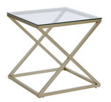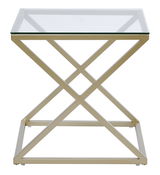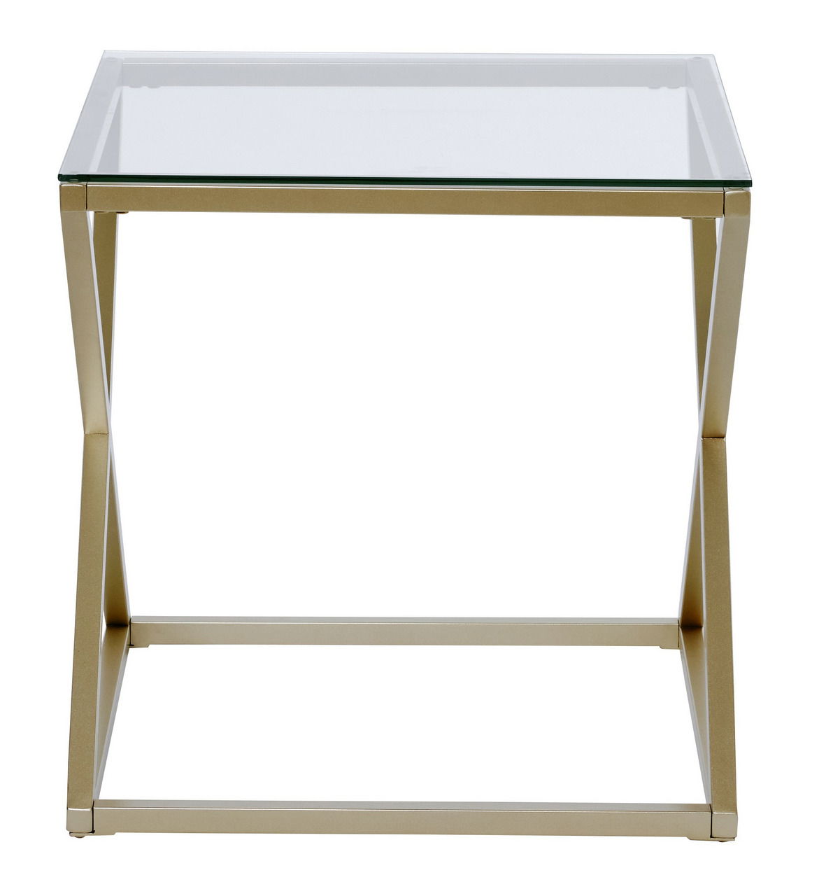 Mit seinem goldenen X-Gestell aus Metall verleiht der Jahnke Beistell-/Nachttisch "X-TRA D 140" modernem Einrichtungsambiente luxuriöses Flair. Elegant abgerundet wird das raffinierte Design von der schwarz glänzenden Tischplatte aus Glas.