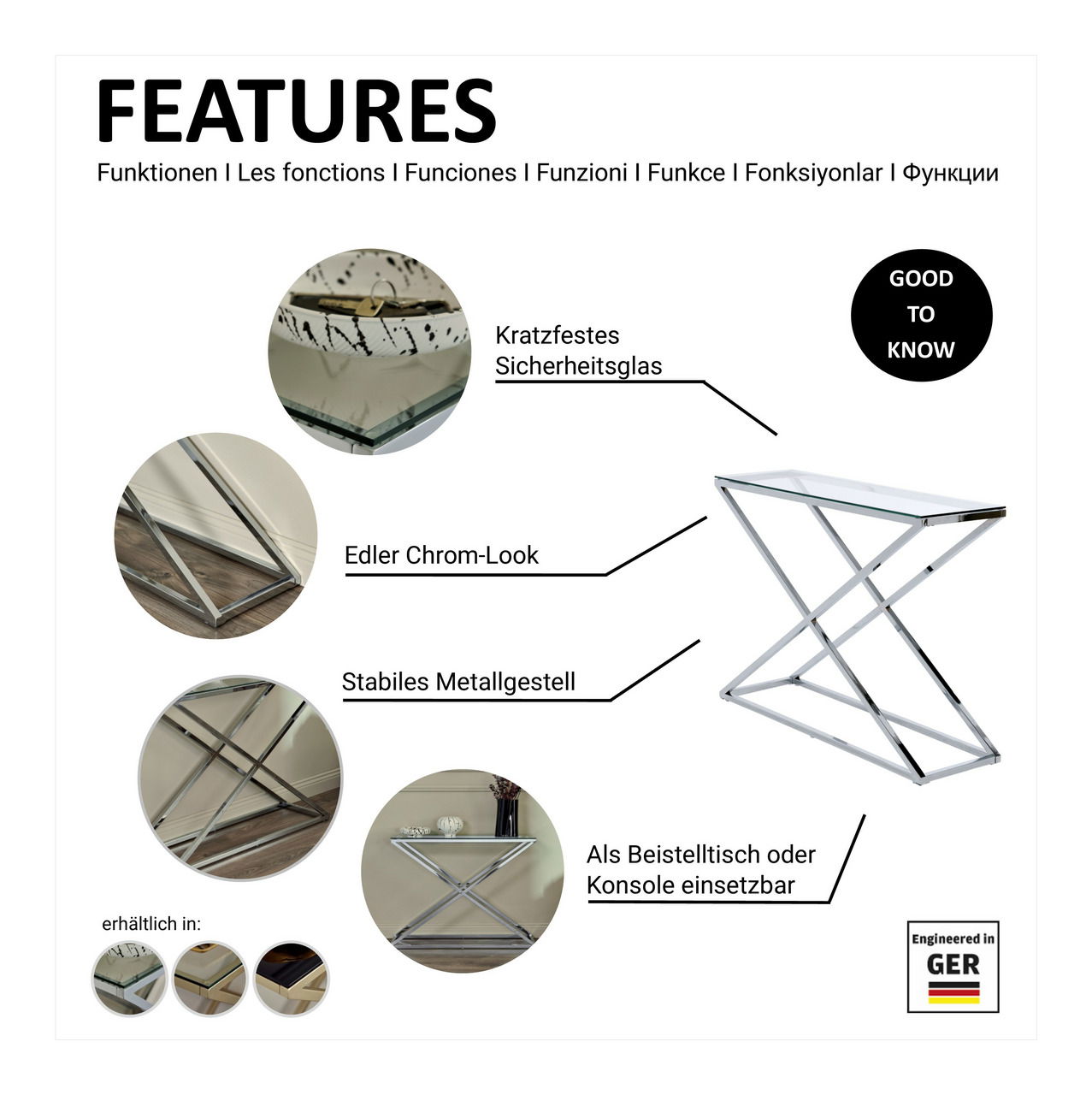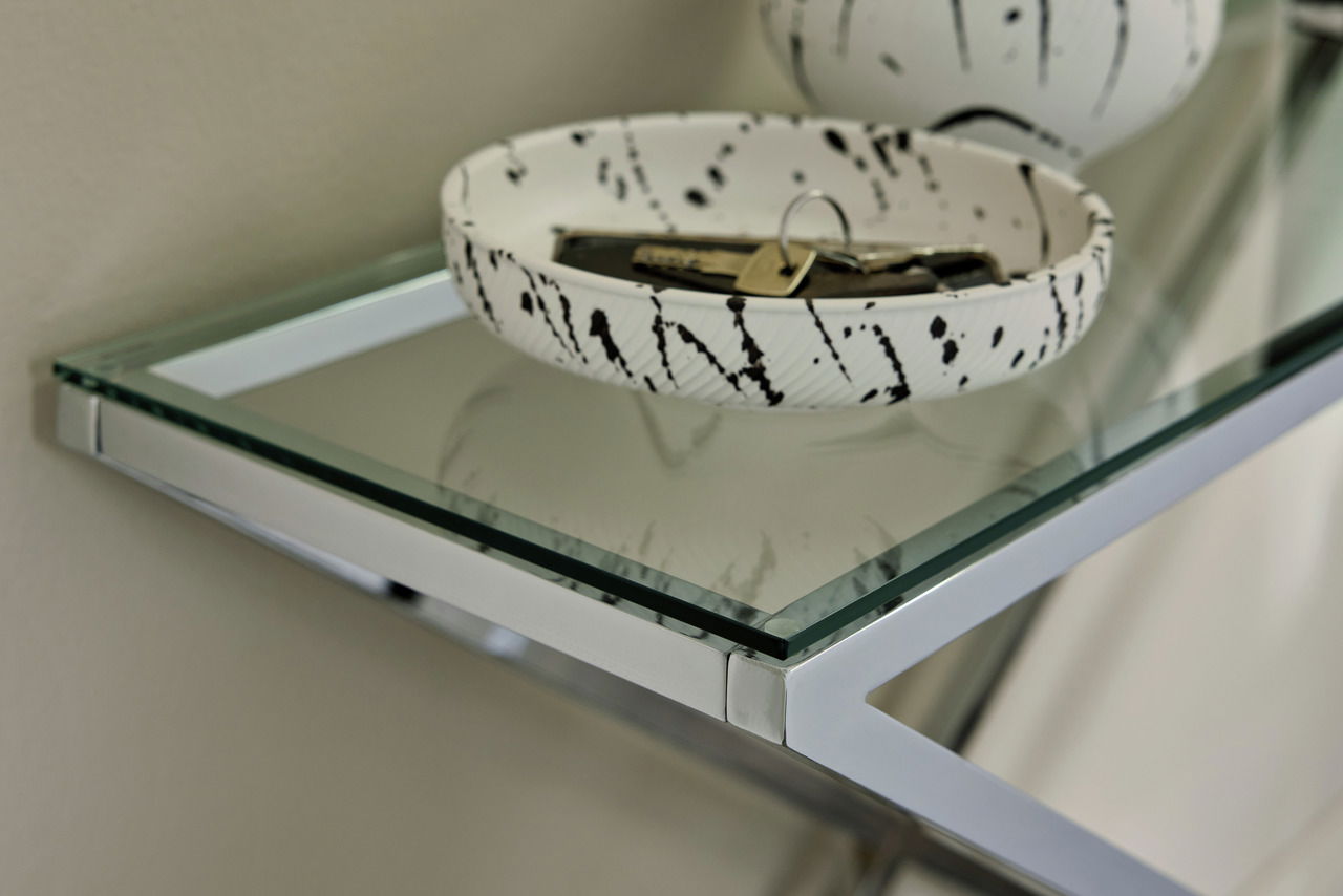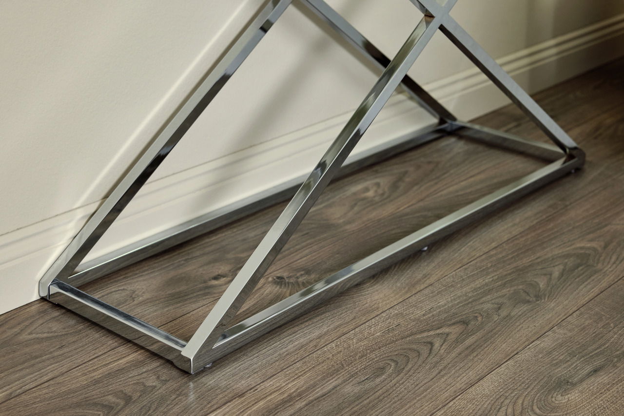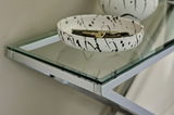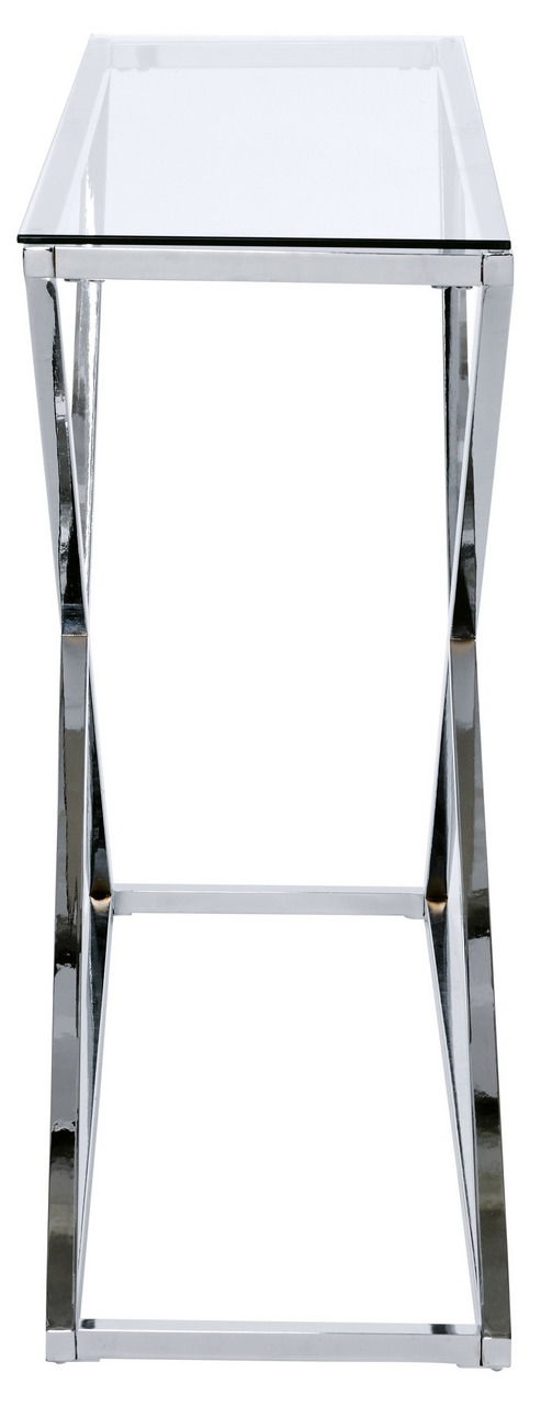 Moderne Einrichtungskonzepte erhalten mit der Jahnke Konsole "X-TRA D 140" einen eleganten Blickfänger. Gleichgültig zu welchem Farbklima, das X-Gestell aus silbernem Chrom und mit edler Klarglasplatte schafft einen extravaganten Bezugspunkt.