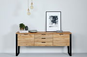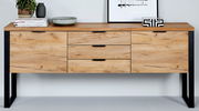 Sideboard mit FachbödenB/H/T ca. 180 x 76,2 x 39,5 cm groß bietet das Board aus Holznachbildung auf einem Metallgestell Platz für 2 Drehtüren und 3 Schubladen. Griffleisten sorgen für leichtes Öffnen. Die Fachböden sind bis zu 5 kg belastbar, das ganze Board mit rund 40 kg. Für die Standfestigkeit sorgt ein Eigengewicht von 44 kg. Kaufen Sie jetzt das Jahnke Sideboard "LOOP"!