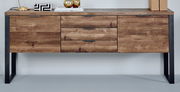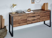 Für einen markanten Hingucker im modernen Cottagestil sorgt das geradlinige Jahnke Sideboard "LOOP". Sein braunes Vintage-Eichendekor von Korpus und Fronten wird von Griffleisten und einem Flachrohr-Kufengestell aus anthrazitfarbenem Metall industriebetont begleitet.