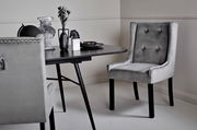 Dieser Stuhl besticht durch grossen Sitzkomfort und seine schicke Optik. Das Marken-Modell von Jahnke bereichert Ihr persönliches Einrichtungskonzept durch das moderne Design zusätzlich. Der Stuhl mit Samt-Bezug ist in Grau gehalten. Die Polsterung aus Schaumstoff sorgt für ausserordentlich hohen Komfort. Die Sitzfläche misst insgesamt 45 x 48 cm. Das Möbelstück verfügt über eine Sitzhöhe von 49,5 cm. Es hat eine Breite von 57 cm, eine Gesamthöhe von 99 cm und eine Tiefe von 64 cm. Der mit 120 kg belastbare Stuhl verfügt über ein Gewicht von 10,3 kg. Hier nehmen Freunde und Familie immer wieder gerne Platz.