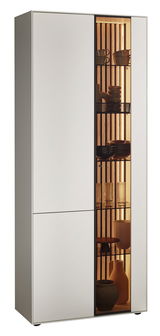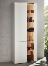 Johann Jakob Standvitrine LUCIANO: Stilvolle Aufbewahrung Diese Vitrine aus hochwertigem Massivholz besticht nicht nur durch ihr modernes Design, sondern auch durch ihre Funktionalität. Die Kombination aus weißem Korpus und Fronten sowie die natürliche Kerneiche-Absetzung verleihen Ihrem Wohnraum eine zeitlose Eleganz. Dank der integrierten Beleuchtung werden Ihre Schätze optimal präsentiert, während die Drehtüren einen leichten Zugang ermöglichen. Überzeugen Sie sich selbst und bringen Sie mit der Standvitrine LUCIANO stilvolle Aufbewahrung in Ihr Zuhause. Bestellen Sie noch heute und setzen Sie ein Highlight in Ihrem Wohnbereich!