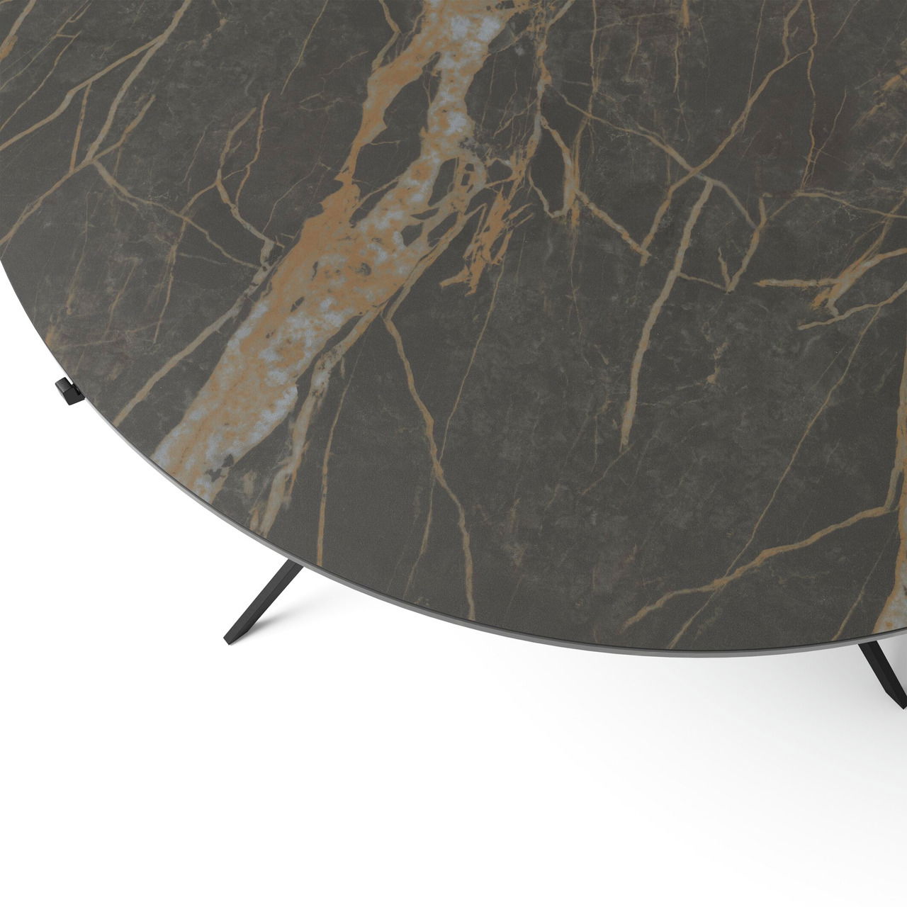 Mit der Oberplatte in dunkler Marmorkeramik Noir Desir ist der Joop Couchtisch "JOOP CURVES" ein eleganter Beisteller. In Kombination mit einem mattschwarzen Spinnenfußgestell passt er perfekt zu modernen Einrichtungsstilen und ausgefallenen Designer-Wohnlandschaften.