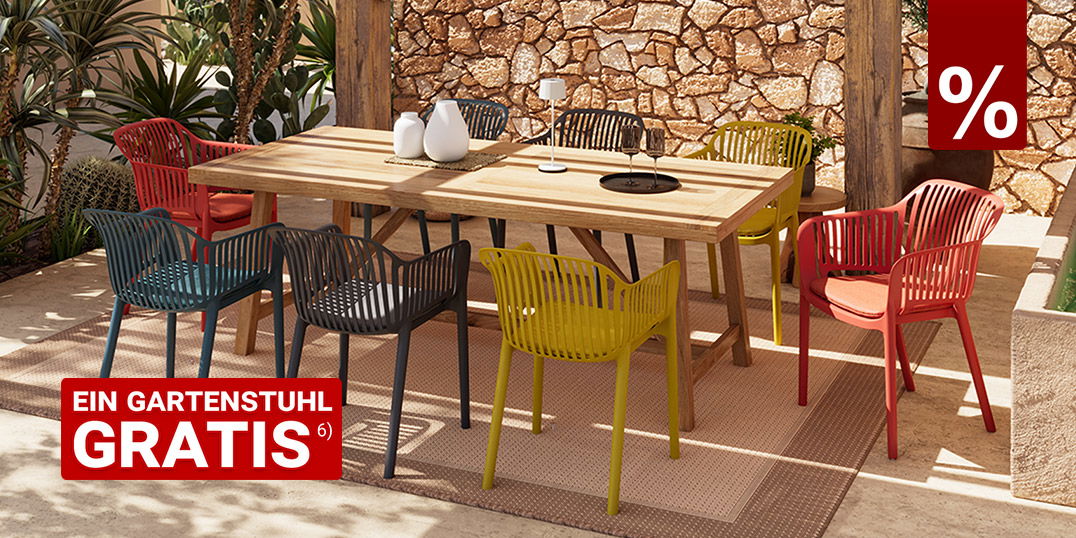 ⁶⁾ Die Aktion ist nur im Onlineshop und nur für Artikel der Seite http://www.zurbrueggen.de/kaufe-6-zahle-5-gartenstuhl-aktion/ gültig und einlösbar. Nicht kombinierbar mit anderen Rabatt- und Tauschaktionen. Keine Verrechnung mit bereits getätigten Käufen. Gilt auch auf reduzierte Ware. Nur gültig beim Kauf von mindestens sechs gleichen Stühlen. Ausgenommen Artikel mit der Kennzeichnung Werbeaktion. Gültig vom 20.03. - 22.03.2026.