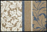 Mit der Kleen-Tex Fußmatte "SINFONIA" erhalten Sie im Eingangsbereich einen funktionalen Begleiter zum modernen Landhausambiente. Das mit eleganten Arabesken in Beige und Blau verzierte Kurzflor-Modell aus Polyamid ist strapazierfähig und schmutzabweisend. Durch die rückseitige Nitrilgummibeschichtung liegt die Matte sicher auf glatten Böden. Das Größenmaß beträgt L/B/H ca. 75 x 50 x 0,7 cm und erlaubt sogar den maschinellen Waschgang bis 60 °C (trocknergeeignet bis 90 °C). Für die Wohnungs- oder Terrassentür - gönnen Sie sich die Kleen-Tex Fußmatte "SINFONIA"!